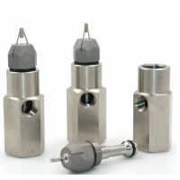 La boquilla de atomización fina automática podría controlar de forma independiente la presión del gas de atomización del líquido y la presión del gas del ventilador para ajustar la tasa de flujo, el tamaño de la gota, la distribución de pulverización y el área de cobertura con precisión. Como resultado de un diseño científico y racional, la boquilla puede rociar idealmente líquidos viscosos.